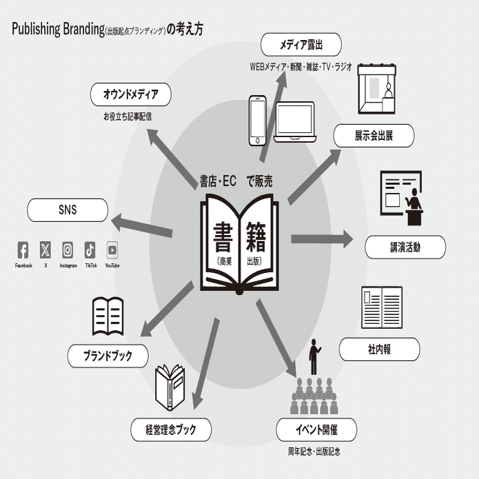 書籍というストック情報を核に、SNS、セミナー、展示会、メディア露出へと展開することで、短期的成果と長期的価値の両立を実現します。